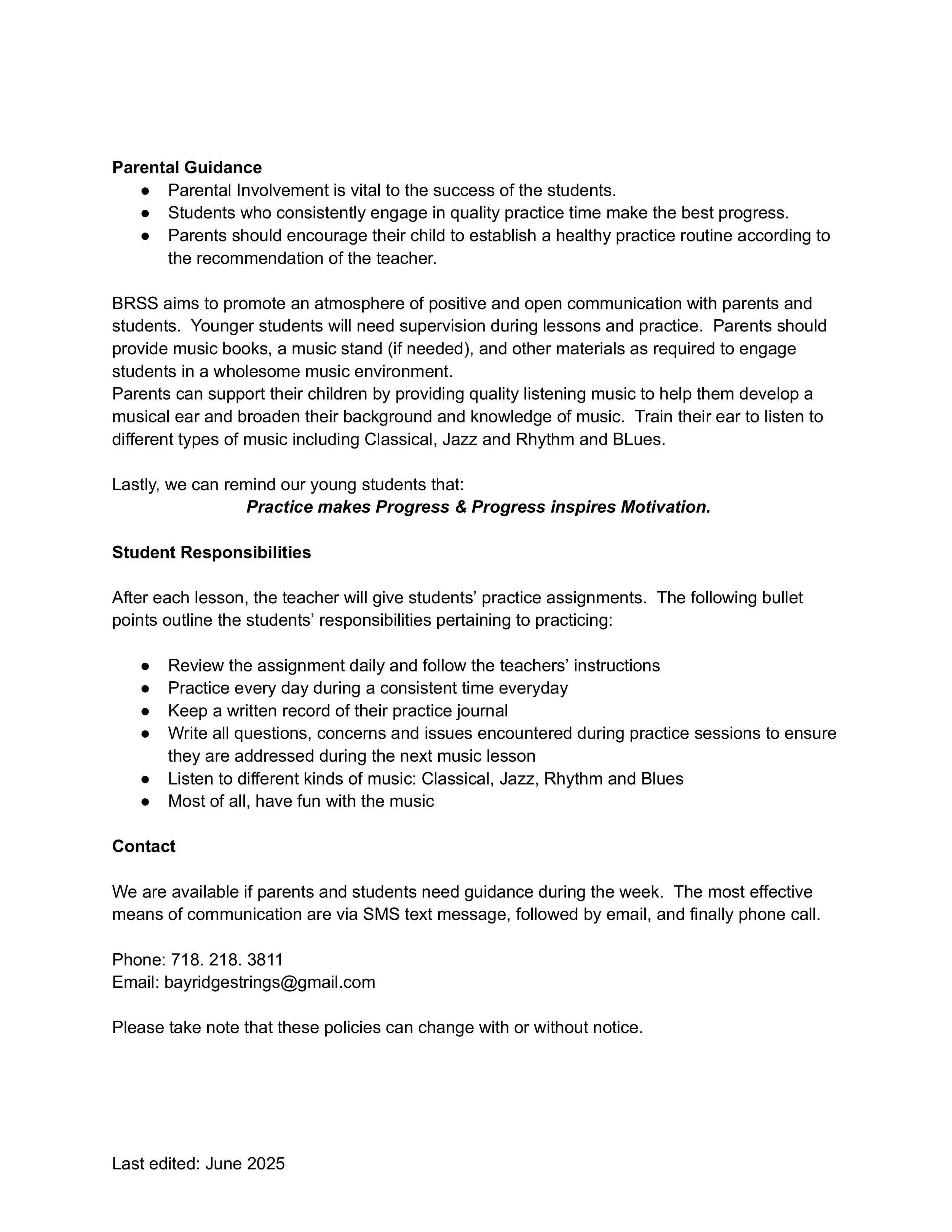 Please review the Studio Policies Below